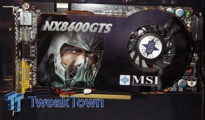 But let us not forget about Nvidia, as MSI makes Nvidia based graphics cards as well. Two interesting designs were on display, both based on the GeForce 8600GTS. The first one was a passively cooled version of the standard MSI design with dual-DVI ports and TV-out, great for those that want decent gaming performance without the fan noise. But the part that really stood out was the NX8600GTS Diamond Plus, as this card featured a dual-slot fan cooler - although we are not sure why it was dual-slot - but more importantly this is the first 8600GTS card with HDMI to appear from one of Nvidia's partners. The card also has one DVI port and TV-out. Strangely enough this card uses a standard four-pin Molex connector for power instead of the standard six-pin PCIe power connector.