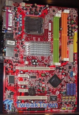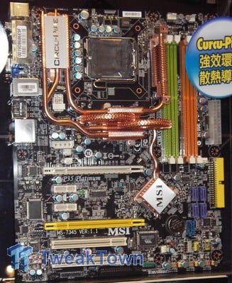For some rather bizarre reason MSI also decided to make a G33 Platinum board. We are not sure about you, but we would not want to spend loads of money on a motherboard with this level of integrated graphics. It features the new fancy Circu-Pipe chipset heat pipe from MSI. The board shares the same features as the P35 Neo2, but has a full set of SATA ports, which makes it a total of five, as well as integrated graphics thanks to the G33 chipset, hence the D-Sub connector on the back. This board also supports an optional TPM (Trusted Platform Module) add-on via a connector below the bottom PCI slot.
