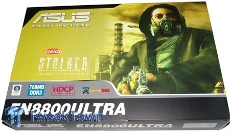 While we have the typical large box design from ASUS we can see they have gone down the Gigabyte path with front of the box being concentrated on the game that is included in the package. In this case, it's S.T.A.L.K.E.R, which is quite a major game that was only released a little while ago in March.
