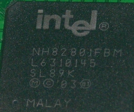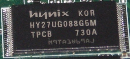 First up we have the 4GB Hynix NAND flash memory (non-upgradeable), this commonly found in portable media players. This is the SSD hard drive and replaces a HDD that would ordinarily have moving parts like a spinning disk and read-write heads. This HDD replacement definitely takes up less space and should you ever drop the Eee PC, at least your data is safely stored in the static Solid State memory. It consists of 4x 1GB modules. Click the picture below to get a better look at all four modules on the PCB.