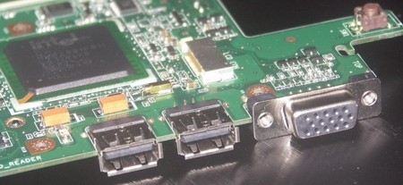 The ICH6-M Southbridge incorporates a conduit to a majority of the other functions found on the Eee PC. Some of those capabilities are listed here: 3x USB ports, Realtek sound chip (ALC6628) giving 5.1-channel High Definition sound, Built-in stereo speakers, MMC(plus)/SD(HC) card reader, Microphone, Keyboard, Mouse pad, 10/100 Mbps Ethernet, V.92 56K modem and several other functions such as the mini PCI-E slots which support the WiFi card. There is also a vacant mini PCI-E port for future expansion options and it is easily accessible through a secured hatch at the bottom of the Eee PC.