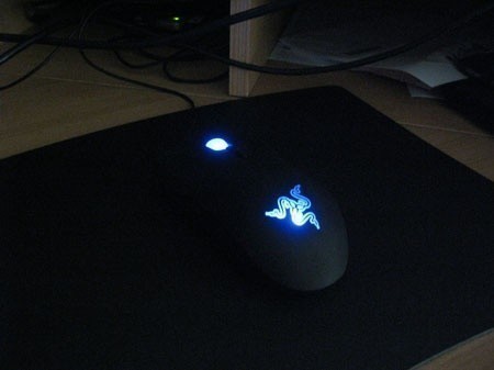 The Lachesis follows the trend of the keyboard and adds yet another gentle blue glow to your desktop arrangement. The scroll wheel lights up blue and the Razer tri-snake gently pulses on and off in the same blue glow that completes the blue desktop ensemble.
