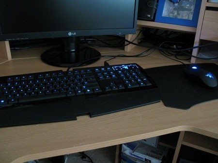 With the Razer Lycosa Keyboard, Lachesis Mouse and Destructor Gaming Surface, we have a serious gaming setup and a sweet looking desktop.