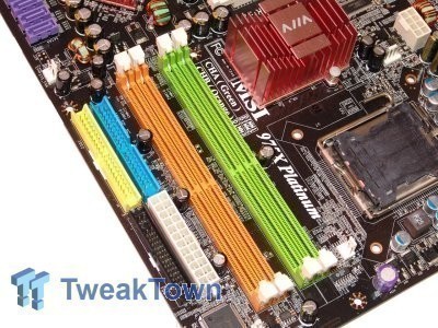 In all of our tests, the memory was running at 1:1 ratio with the CPU FSB. This will give an advantage to the motherboards which are able to overclock further.