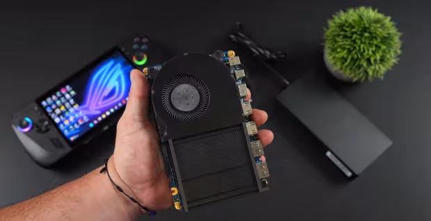 The limitations of Thunderbolt 4 and USB4 mean that we don't have the best results, with ETA Prime testing the prototype eGPU solution on the ASUS ROG Ally X gaming handheld (which uses USB4), hitting 3157 points in 3DMark Steel Nomad, and between 13,358 and 13,629 points on 3DMark Time Spy (tested on the ASUS ROG Ally X and desktop gaming PC powered by the AMD Ryzen 7 9700X processor).