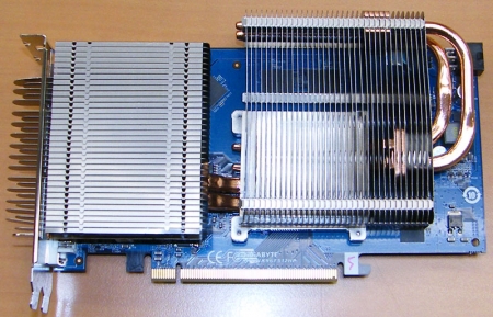 We'd just like to point out one thing here for those looking to buy one of these cards, the heatsink should get hot, if it wasn't obvious. That's the great thing with the way these cards have been designed, they draw the heat away from the GPU so it runs cooler and then the heat is transferred to the heatsink quicker than in the past thanks to the extra copper surface that Gigabyte has added between some of the heatsink fins. This copper surface improves the heat transfer from the heatpipe to the heatsink and as such this card is likely to have a much hotter heatsink than most passive graphics cards, but this is a good thing, as the heatsink is meant to dissipate the heat, which in other words means that a cold heatsink is most likely not working all that well.