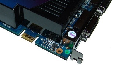 Continuing around the card we get to the top where we see a single SLI connector. This should mean that the card doesn't support the new Tri-SLI technology available on the new 780i NVIDIA based motherboards. The feature tends to only be seen with their top-end cards.