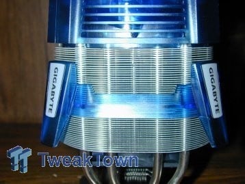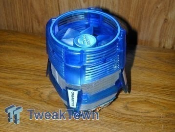 The large footprint might turn some off, but it is simply a means to enhance a design that must sit taller than other coolers simply because of the technology in use. I have seen others that are just hulks sitting on top of their heatpipes. Gigabyte decided to do something about it and give it a unique look. Add to this the LED lighting and you have a cooler that will catch the eye of your neighbor at your next LAN.